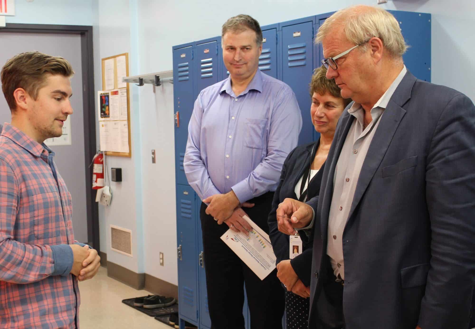 NanoFabrication Kingston was pleased to welcome John Knubley (right), Deputy Minister of Industry, Science and Economic Development for Canada, during his visit to Queen’s University’s Innovation Park on Aug. 16. During his tour of the NFK lab he heard from Christian Baldwin (above left), CTO for NFK-enabled startup Spectra Plasmonics, who gave Minister Knubley an overview of his company’s novel sensing technology. Also taking part were Graham Gibson, Operations Manager of the NFK lab, and Gord Harling (above centre), President & CEO of CMC Microsystems, which manages NFK. Hosting the tour was Janice Mady (centre right), Director, Research and Innovation Partnerships, Queen’s University.