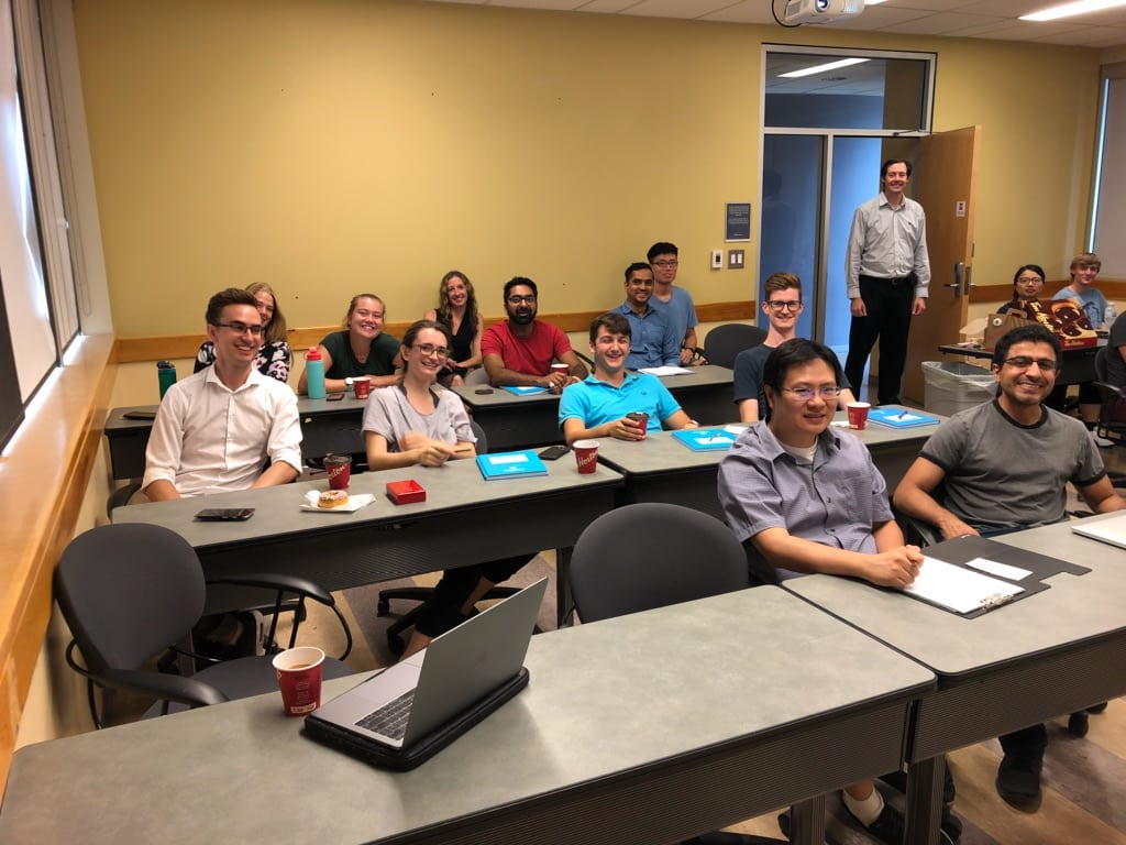 More than 20 NFK users from Queen’s University’s departments of Physics, Chemistry, Electrical & Computer Engineering, Chemical Engineering and Biomedical and Molecular Sciences, as well as startup Spectra Plasmonics and CMC Microsystems, gathered on Aug. 9 to discuss their work and offer suggestions for equipment and services. Thanks to Dr. Richard Oleschuk’s research group for telling us about their work, and welcome to two new members of our community (shown in front row), Drs. Peng Wang (Chemistry) and Bhavin Shastri (Physics)!